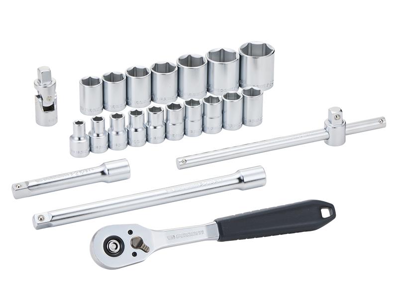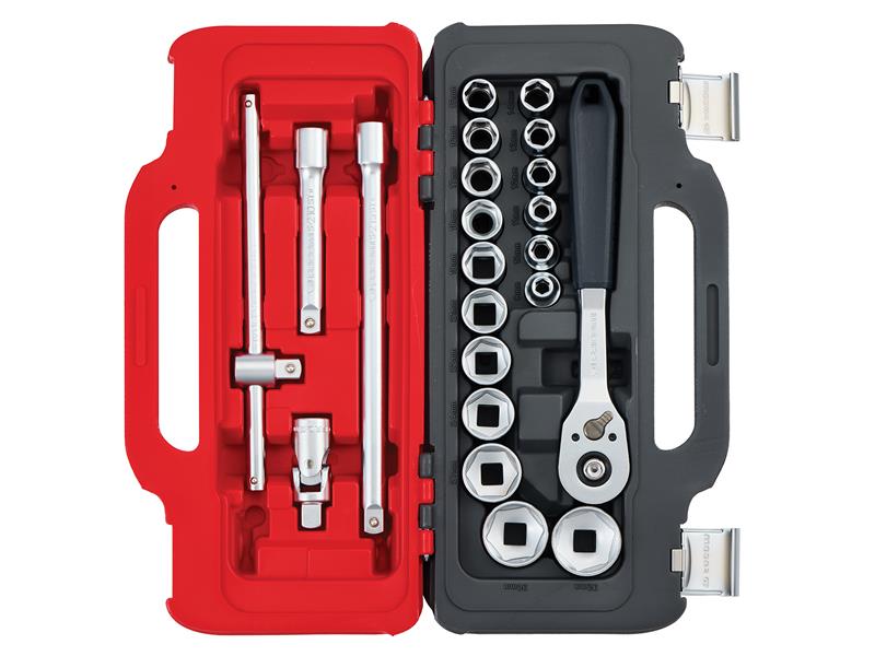 22 Piece SL.151-EP22PB Facom 1/2in Drive Socket Set in TWIN BOX case. The integrated ergonomic handle ensures easy and comfortable transport, both in the workshop and on the go. Made from highly resistant, textured plastic with sturdy metal latches. Contents: