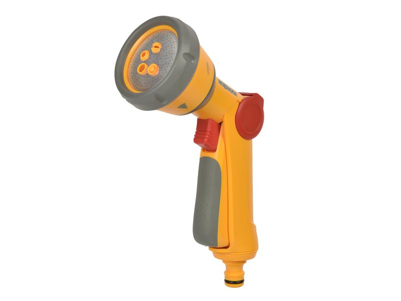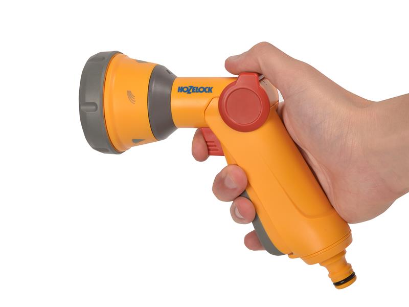 The Hozelock 2679 Multi Spray Soft Touch Gun is perfect for watering and cleaning. It has five spray patterns: Cone, Jet, Fan, Fast Fill, Fine Rose. Ideal for various garden watering and cleaning tasks. Adjustable flow control allows you to customise the water flow for optimal efficiency. Utilises the Quick Connect System, easily attaches to your Hozelock system for simple setup.