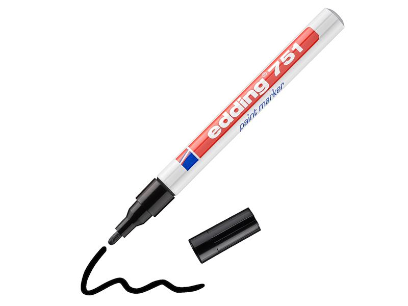The edding 751 Black Fine Paint Marker has low-odour ink that features no added toluene/xylene. The paint-like pigment ink is quick-drying, weatherproof, extremely lightfast and wear-resistant. Its round nib has a stroke width of 1-2mm.