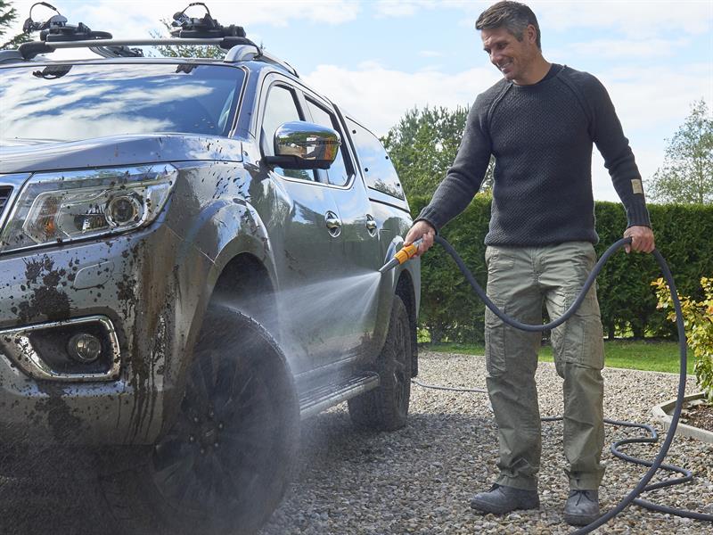 The Hozelock Tuffhoze combines traditional PVC with textile for maximum flexibility and strength. It is up to 50% lighter compared to traditional hoses, making it easier to manoeuvre.