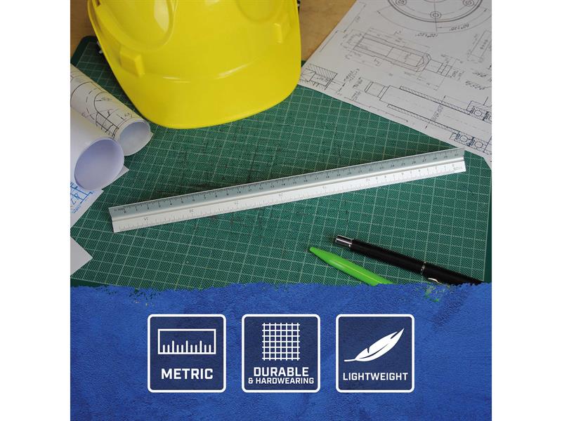 This Faithfull Aluminium Triangular Scale Rule is graduated with six different scales for precision drawing. (1:20, 1:25, 1:50, 1:75, 1:100, and 1:125). The graduations are clear and easy to read.The unique triangular profile keeps fingers well away from any knife edge when used for cutting or scoring card etc.