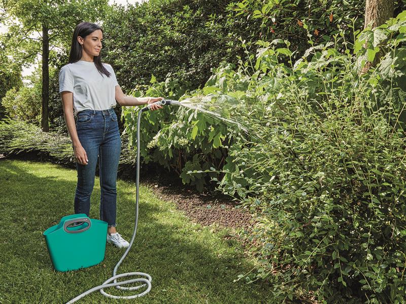 The Aquapop ergonomic lance has 3 settings: Cone, Fan and Straight. The ergonomic shape of the lance and flow regulator (which allows you to control the amount of water delivered) make watering even easier. Thanks to the included Plug&Play Kit it can be connected to the hose in an instant. After watering and dripping operations, it is easily stored inside the practical plastic bag, convenient to carry and place where you want.