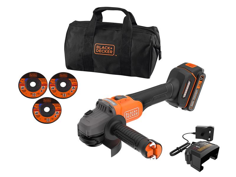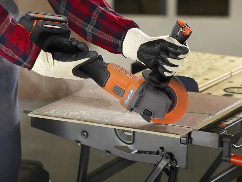The BLACK + DECKER BCG6L8D13 POWERCONNECT™ Brushless Angle Grinder comes with the right balance of power, weight and size ideal for a range of DIY jobs. Brushless motor technology delivers more power, improved running time and longer-lasting motor life. The slide lock-on trigger increases ease of use when the tool is in operation.