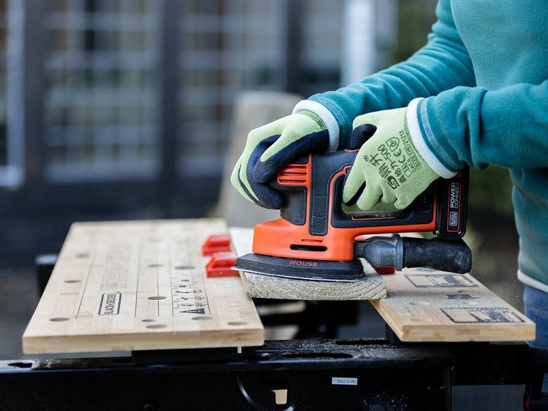 The BLACK + DECKER BDCDS18 Mouse® Detail Sander has a lightweight, compact and ergonomic design that enables you to sand the most intricate and uneven spaces with complete control and comfort. Its replaceable finger tip can reach into tight spaces.