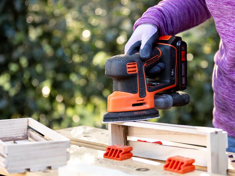 Part of the BLACK + DECKER 18V POWERCONNECT™ SYSTEM. One battery to work with compatible Power Tools, Home Cleaning, Lawn and Garden products. The lithium-ion battery can hold charge for up to 18 months whilst not in use, so your sander is ready for your next project, when you need it.
