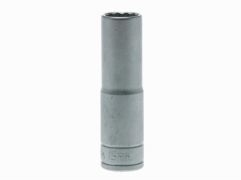 A professional bi-hexagon 1/2in Square Drive deep socket produced in accordance with ISO 900 and AS954 specifications for increased torque and reduced risk of rounding fasteners. Manufactured from chrome vanadium steel with a satin finish.
