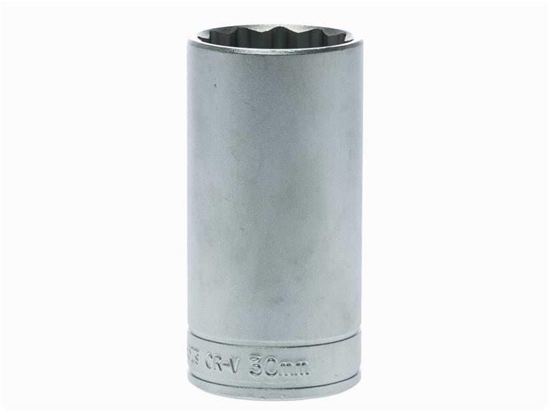 A professional bi-hexagon 1/2in Square Drive deep socket produced in accordance with ISO 900 and AS954 specifications for increased torque and reduced risk of rounding fasteners. Manufactured from chrome vanadium steel with a satin finish.