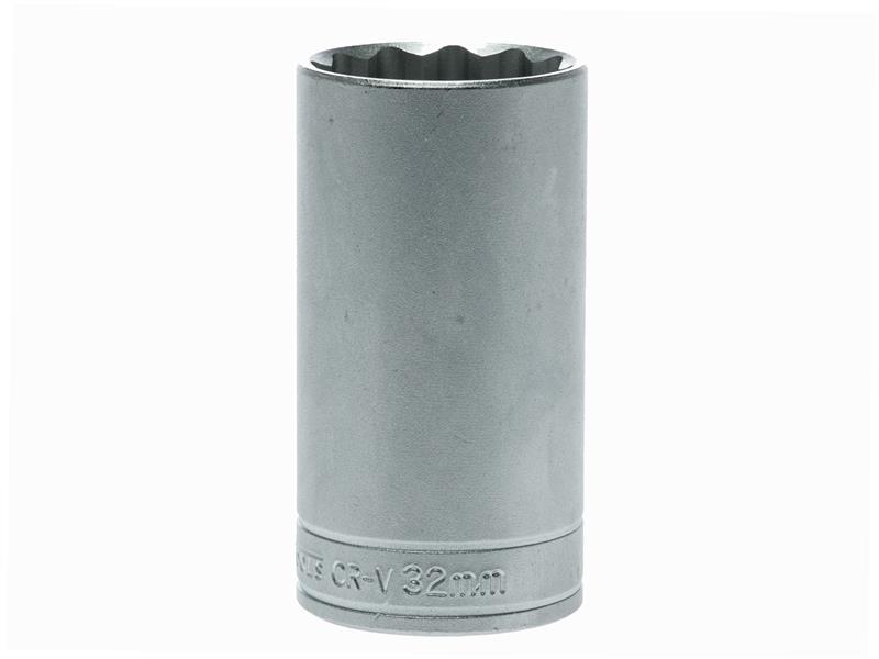 A professional bi-hexagon 1/2in Square Drive deep socket produced in accordance with ISO 900 and AS954 specifications for increased torque and reduced risk of rounding fasteners. Manufactured from chrome vanadium steel with a satin finish.