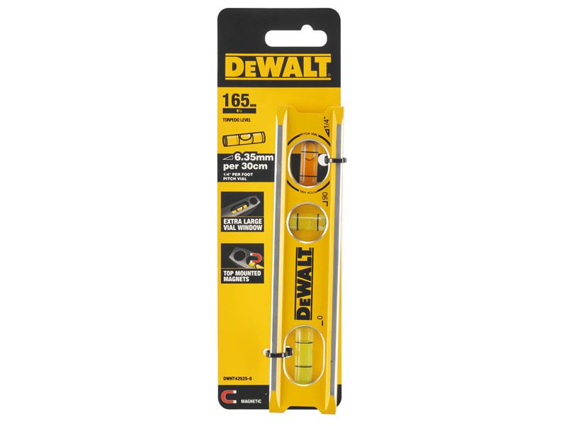 The DEWALT® Billet Level is unbeatable for use in tight, confined places on the job site. Machined from an extruded aluminum, this level offers ultimate durability. Additional vial windows on the top and bottom allow for fast and accurate readings at any angle. Highly accurate 1cm per 30cm pitch vial.