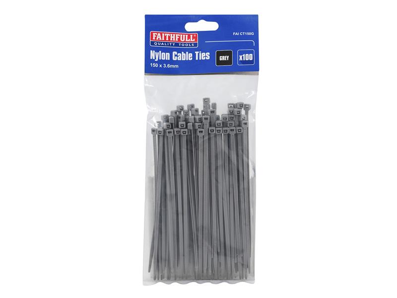 100 x Faithfull Cable Ties Grey 3.6 x 150mm