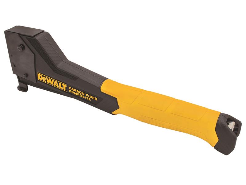 The DEWALT® Carbon Fibre Composite Hammer Tacker features a lightweight carbon fibre composite structure. The reduction in overall weight and vibration allows you to work longer with less muscle exertion. Autolock, anti-jam and a pinch latch provide reliability and ease of use. Fitted with an ergonomic, vibration absorbing grip for improved comfort during prolonged use. The hammer style design provides comfort and ease of use.