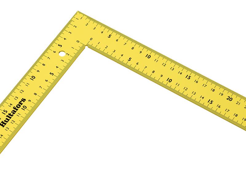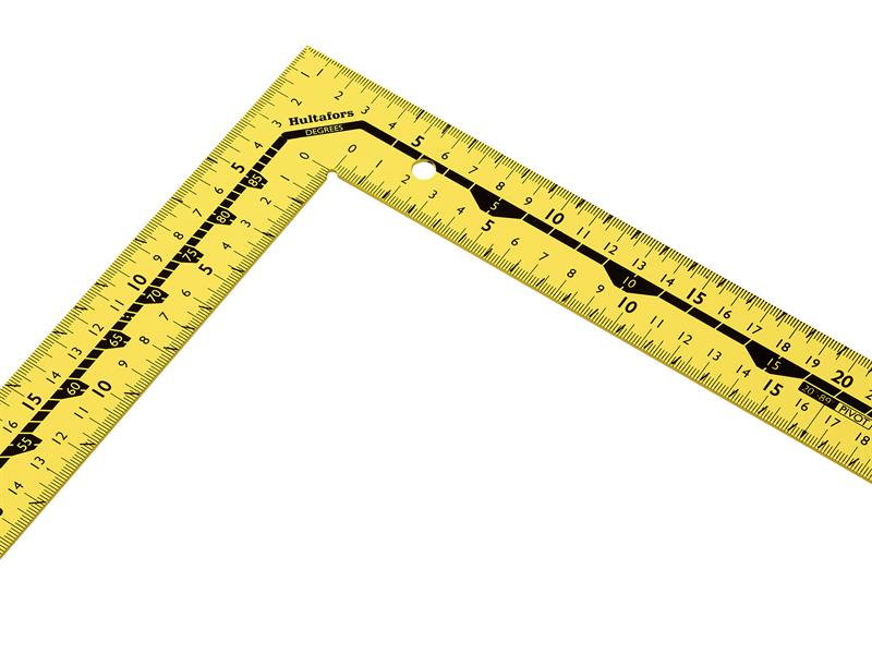 The Hultafors Carpenters Square is made of 1.5mm thick high-strength steel, cut with precision laser, provides a durable and high precision product. There is a millimetre graduation on the front and back side of the square. There is also an additional angle scale on the backside, with two pivot points, one for 1-20° and one for 20-89°.