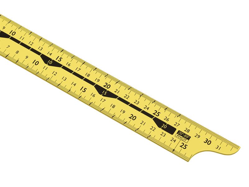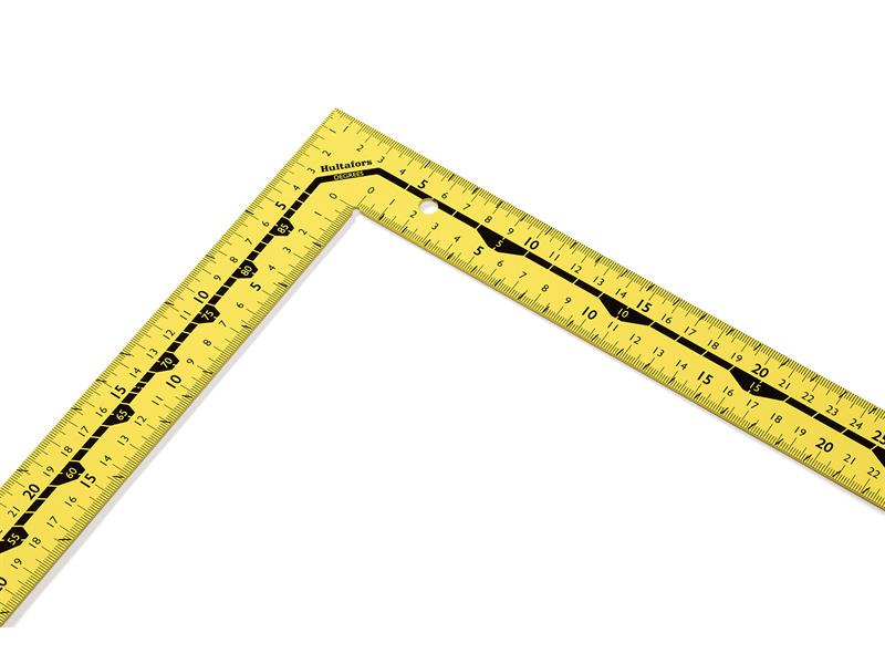 The Hultafors Carpenters Square is made of 1.5mm thick high-strength steel, cut with precision laser, provides a durable and high precision product. There is a millimetre graduation on the front and back side of the square. There is also an additional angle scale on the backside, with two pivot points, one for 1-20° and one for 20-89°.