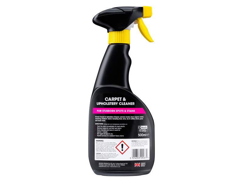 Kilrock Carpet & Upholstery Stain Remover actively breaks down organic matter. Its active enzyme formula removes stubborn stains including food, wine, tea, coffee, blood, grass and much more.