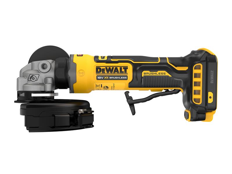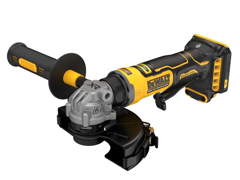 The DEWALT DCG404 XR Brushless Angle Grinder has a compact design, around 28% smaller, ideal for working in confined spaces, awkward angles and overhead applications. Despite its reduced size, the DCG404N is built to perform under pressure. Its advanced brushless motor delivers professional-grade power while improving efficiency, extending tool life and maximising runtime from your 18V XR batteries.