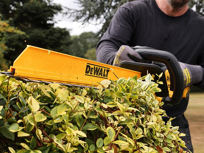 The DEWALT DCMHT567 XR Hedge Trimmer is ideal for larger hedges and shrubs. Its brushless motor provides increased run time and more efficient power transfer. Fitted with dual action, laser cut blades, made from hardened steel for longer life and lasting sharpness. Its compact, lightweight design helps minimise user fatigue, whilst the wraparound auxiliary handle provides a comfortable grip in multiple orientations.