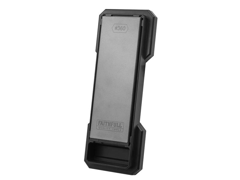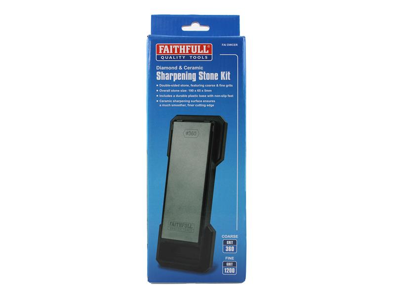 The Faithfull Diamond Sharpening Stone Kit is ideal for quick, easy and effortless sharpening of any blade. The stone is double-sided, measuring 65mm x 190mm, with two grits. On one side, there is a coarse-diamond 360 grit great for sharpening dull edges, while the opposite side has a fine-ceramic 1200 stone providing a high-quality finish to blades and tools. The stone comes housed in a durable plastic base which features non-slip feet to ensure added safety while sharpening, as well an a useful tray to hold your choice of oil or lubricant.