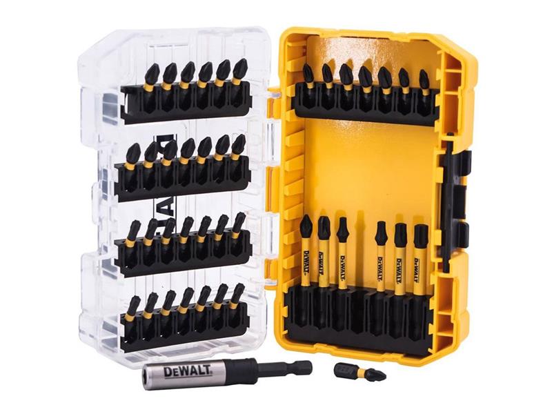 DEWALT DT70765T FLEXTORQ Screwdriving Set. Extreme FLEXTORQ screwdriver bits are designed to withstand the high forces of todays impact drivers. This significantly reduces the instances of failure when fixing large screws in place. Supplied in a TOUGH CASE+, this is part of a connectable case system TSTAK™ compatible. Individual TOUGH CASES can be clipped together for easy transportation. Contains: