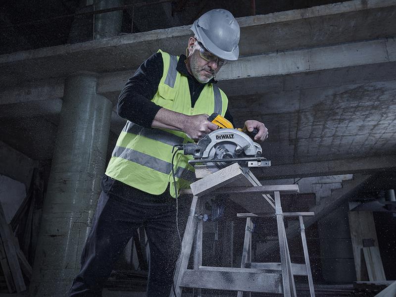 The DEWALT DWE5615 Circular Saw is ideal for general purpose ripping, cross-cutting and bevelling in wood and other construction materials. Its high power motor provides increased cutting performance. The design has been carefully thought out to ensure safe, fatigue-free operation. An additional handle ensures safe two-handed work. Tool free adjustment allows for quick and easy adjustment of depth and bevel settings.