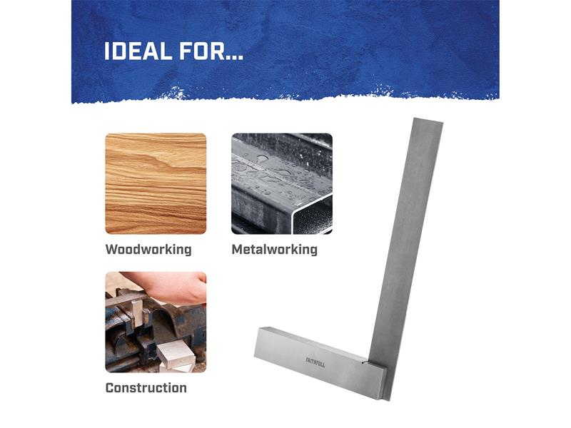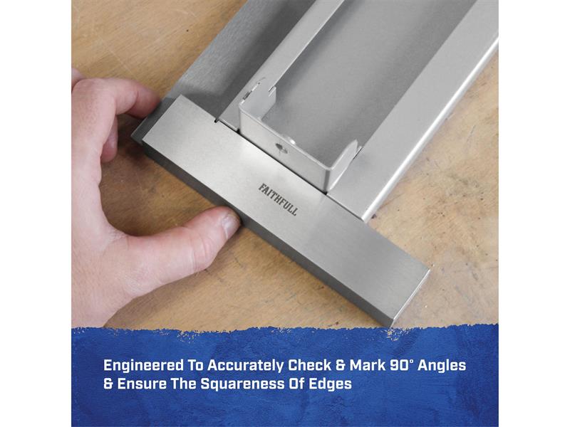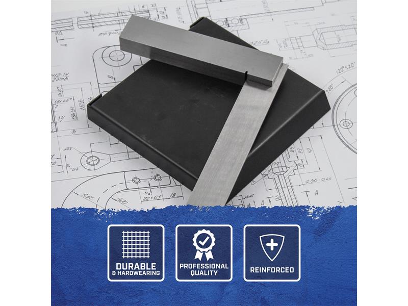 The Faithfull Engineers Square has been carefully crafted from high quality tool steel. The stock and blade are precision ground to ensure straightness and accuracy, and the spring steel blade is hardened and tempered for increased durability.