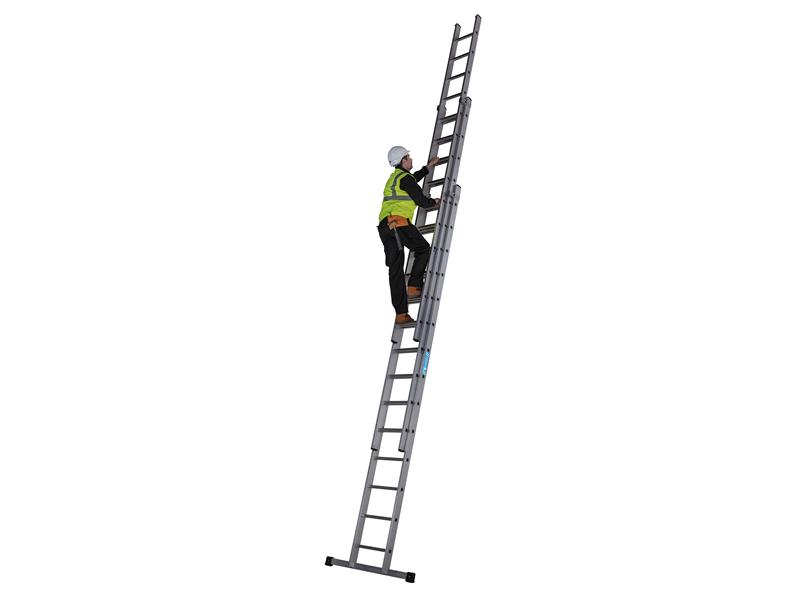 The Zarges Everest Square-Rung Triple Extension Ladder is built for trade and industrial use. Its durable, slip-resistant square rungs provide a secure, comfortable footing. Whilst the robust, high-performance box-section stiles allow for maximum strength and stability.