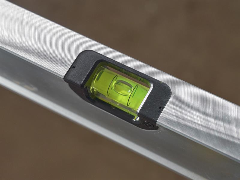 Fully secured vial technology is designed to protect the vials against drop damage, while the 90% larger plumb vial provides an easier-to-see bubble for better visibility. The shock absorbing end caps are rubber moulded to protect the level from drop damage and feature raised anti-slip surface protectors to help protect against slipping and surface marking. Additionally, the end caps can be removed, making 90-degree markings and corner lines easier and more accurate. Strategically placed finger grab rails and wrap around handed grips are also incorporated for easier one handed use and better ergonomic design.