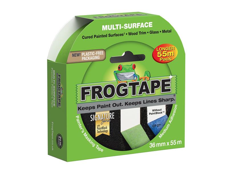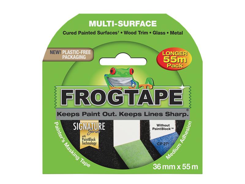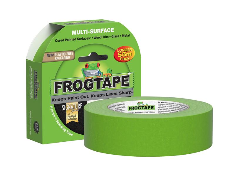 Shurtape FrogTape® Multi-Surface is a medium adhesion painters tape for use on painted walls, wood trim, glass and metal. Keeps paint out, Keeps lines Sharp ™ Designed for use with Emulsion Paint.