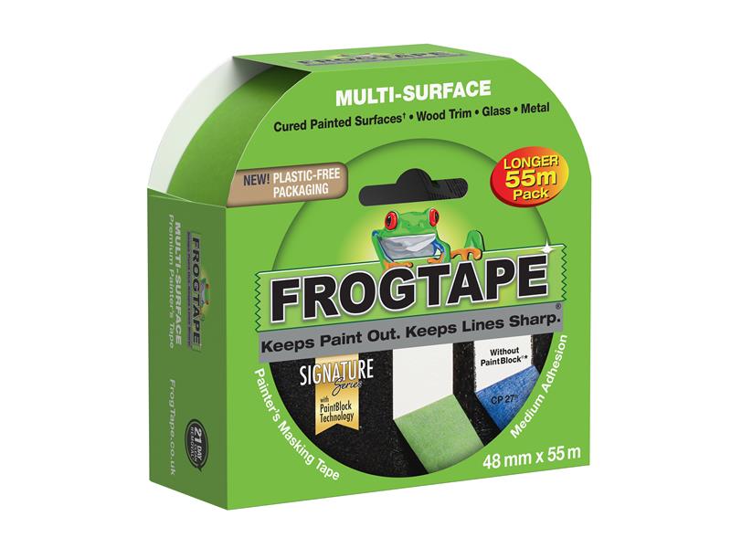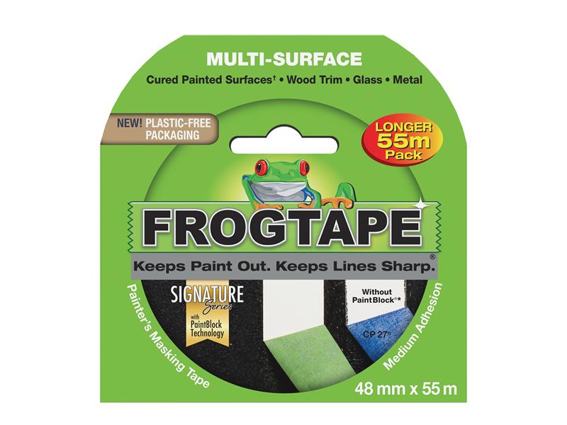 Shurtape FrogTape® Multi-Surface is a medium adhesion painters tape for use on painted walls, wood trim, glass and metal. Keeps paint out, Keeps lines Sharp ™ Designed for use with Emulsion Paint.