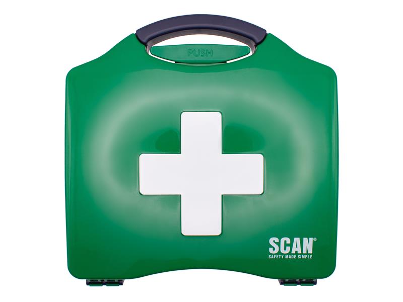 Scan General-Purpose First Aid Kit supplied in a compact, polycarbonate briefcase style box. Suitable for travel, leisure and general domestic use. Supplied with a wall hanging bracket.