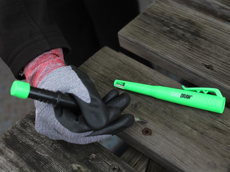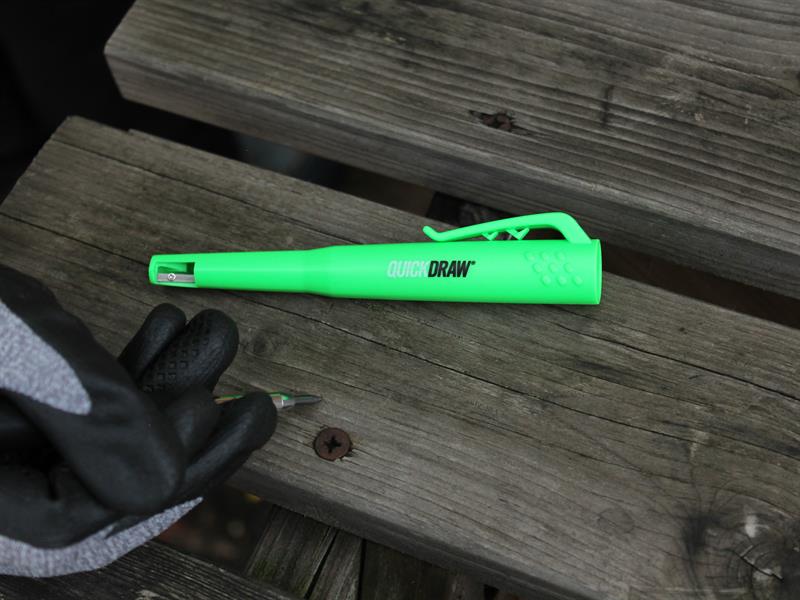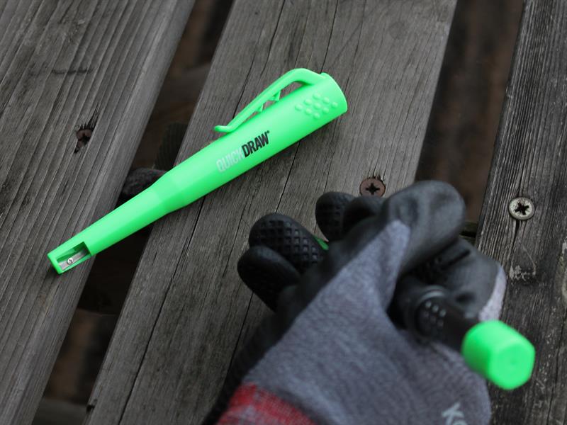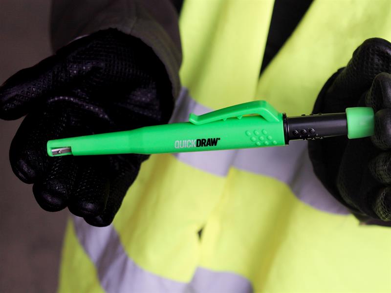 The Advent Green QuickDraw Automatic Trade Pencil writes on almost any surface. Ideal for deep hole marking and general-purpose marking. Other features include a stainless steel lead-feed tube, integrated sharpener and a handy belt clip.