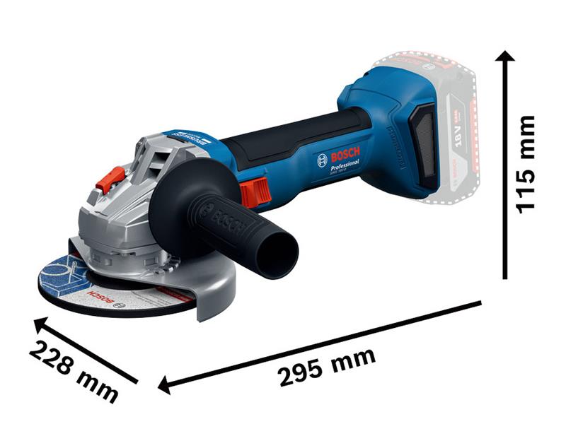 The Bosch GWS 18V-8 Professional Angle Grinder packs 800W of equivalent corded power, making it an ideal combination of comfort and performance for light-duty cutting and grinding tasks. You can expect the fastest cutting performance in light-duty tasks such as cutting rebar, metal sheets, PVC and tiles, or deburring light metal.