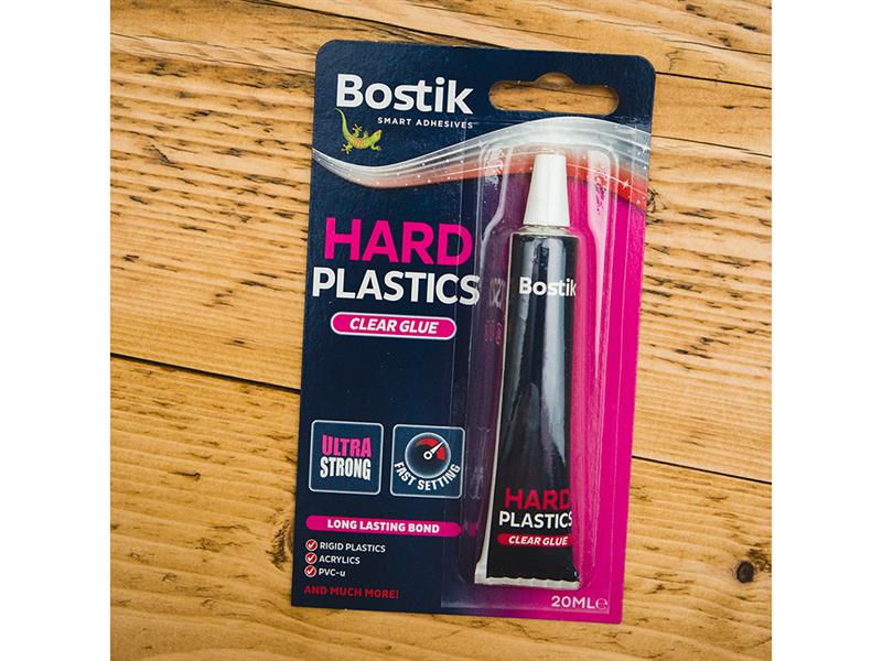Bostik Hard Plastics glue is an ultra strong, quick drying clear adhesive. It is perfect for tough repairs on most hard and clear rigid plastics including PVC-U, ABS and High Polystyrene and other materials.