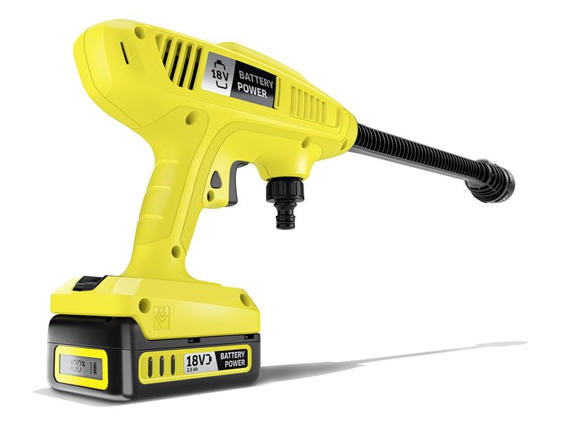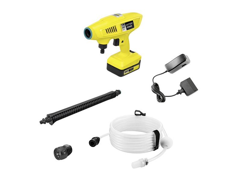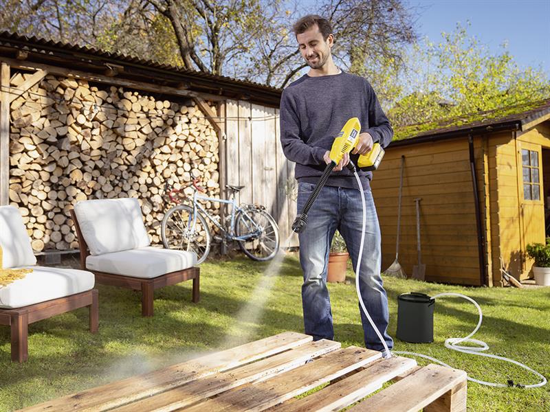 The Karcher KHB 4-18 Plus Battery Set Pressure Washer can be directly used here and there for cleaning without long preparation. With the 5-in-1 multi jet nozzle, dirt can be removed from garden furniture, toys, bins and many other objects and surfaces in no time or plants and vegetable patches watered.
