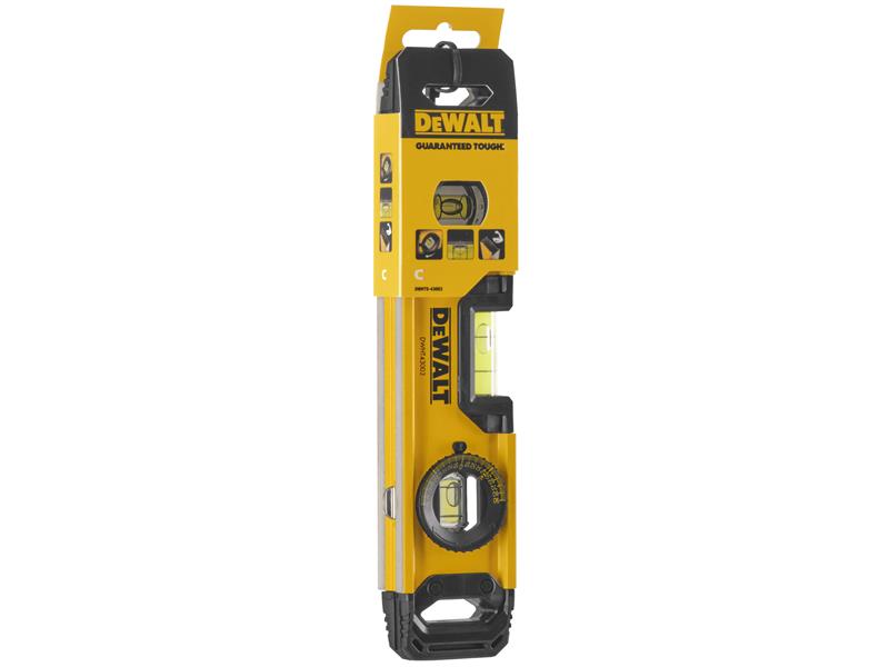 The DEWALT Torpedo Level has an extruded aluminIum body with rare earth magnets and a V-Groove base for use on metal and rounded surfaces. The aluminium extruded box beam body provides ultimate durability and avoids twisting.