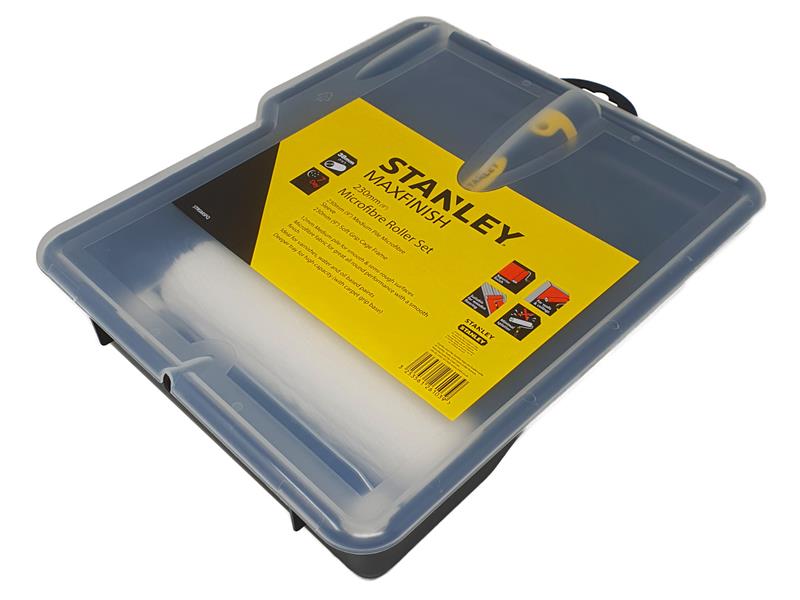 These Stanley Microfibre Roller Sleeves provide a great all-round finish and are ideal for varnishes, water-based and oil-based paints. They can be used on smooth and semi-rough surfaces and create minimal splatter.This set includes a storage paint tray keeping paint fresh for up to 7 days.