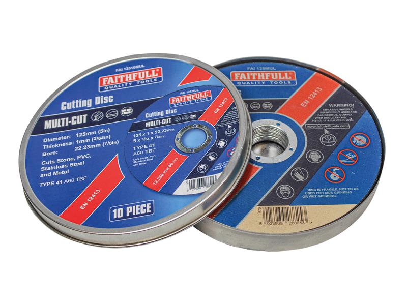 Pack of 10 Faithfull Multi-Purpose Cutting Disc 125 x 1.0 x 22.23mm