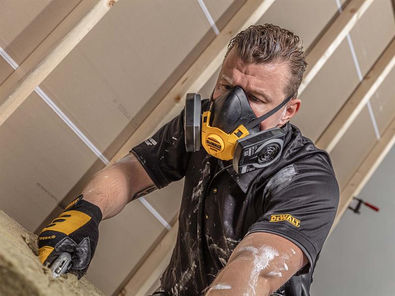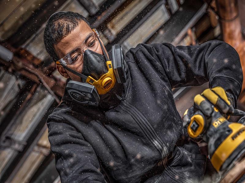 DEWALT Reusable Half Mask Respirator with P3 filters. Provides protection in workplaces which have high levels of fine dust, lead, silica, MDF particles, or other forms of industrial pollatants in the air.
