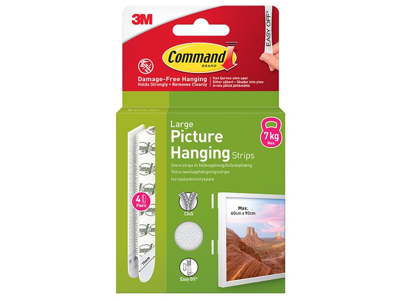 Command™ Picture Hanging Strips are an innovative solution for easily hanging framed photos and artwork. 3M stretch-release technology provides a strong hold and removes cleanly.