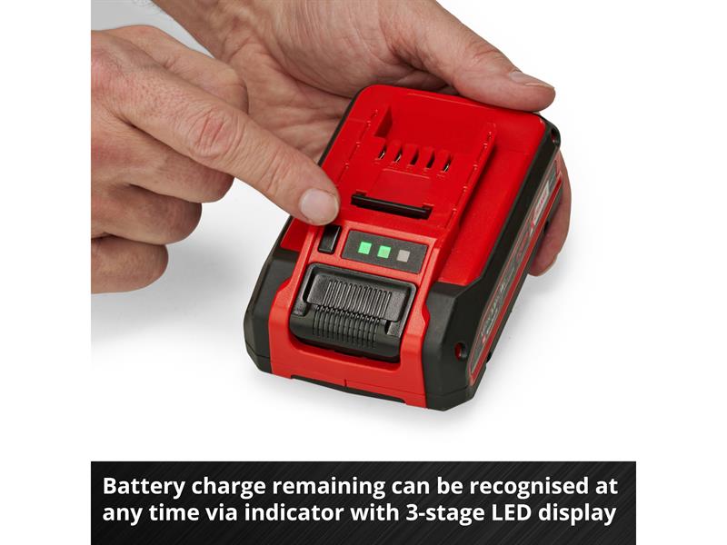 1 x 18V 4.0Ah Power X-Change Li-ion Battery features a 7-in-1 ABS: Active Battery Management System and a 3-Step LED battery control. The microprocessor controls key parameters like temperature and voltage, and even a deeply discharged battery can be charged in repair mode, which offers a long working battery life. The high-quality Li-ion battery cells provide nearly no self-discharge and the rubber-coated housing gives high impact protection and a high grip. It also has a recessed grip to ensures good ergonomic handling.