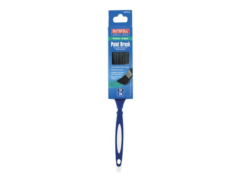 The Faithfull Proflow Angled Paint Brush is designed for both amateur decorators and professional painters. Made with a blend of high-quality synthetic filaments, it ensures excellent paint pick-up and a smooth, even release onto any surface. The carefully designed filament length and specially treated tips guarantee a professional finish every time, whether you’re using water-based or oil-based paints. The angled head is designed to give more control when cutting in.