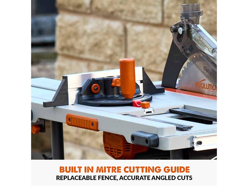 The Evolution R255TBL Portable Table Saw has a powerful 1,650W motor that features thermal overload protection and a paddle style emergency stop. The transparent blade guard offers improved cut visibility, and the Quick Release Riving Knife features offset-angle and lateral adjustment for safer cutting. The new motor housing offers improved dust extraction, better access for cleaning, and blade swaps are easier than ever before, just pop out the metal throat plate.