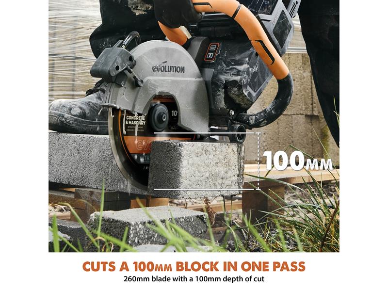 The R260DCT-Li has a 100mm maximum depth of cut and the power to slice through bricks and blocks in a single pass. The ultra-efficient 36V brushless motor and cordless specific blade combine to give longer run times and more cuts per charge for less money than the competition can manage. Delivers power and performance. It has the raw cutting performance of our corded saws in a lighter, smaller, and cable-free package.