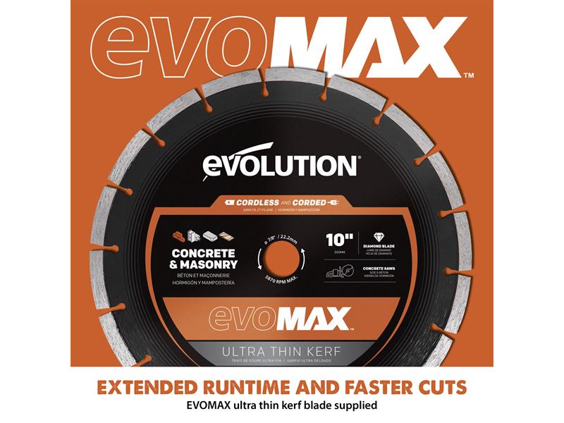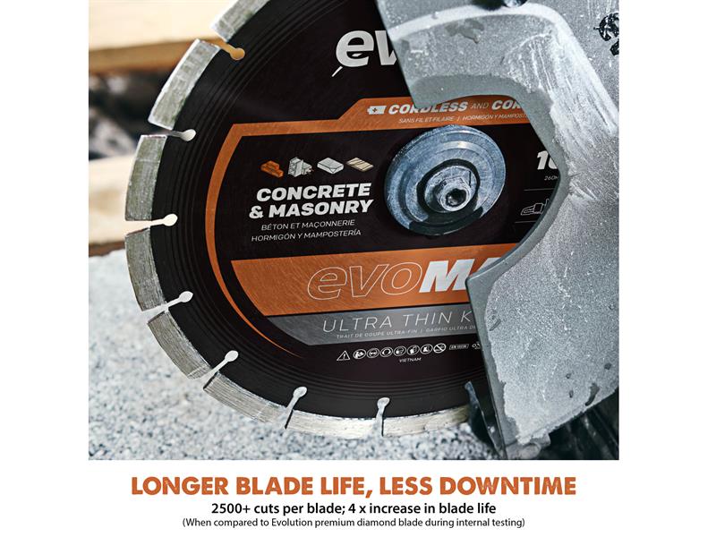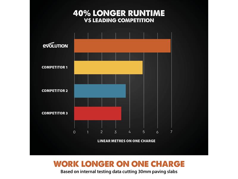 The Evolution R260DCT-Li Cordless Disc Cutter is designed for the trade. It features automatic, water-fed dust suppression. This lets the water flow as soon as the blade starts spinning and cuts the water off when you release the power. Theres also an independent flow rate control valve, so you can set and forget to get perfect cuts every time.