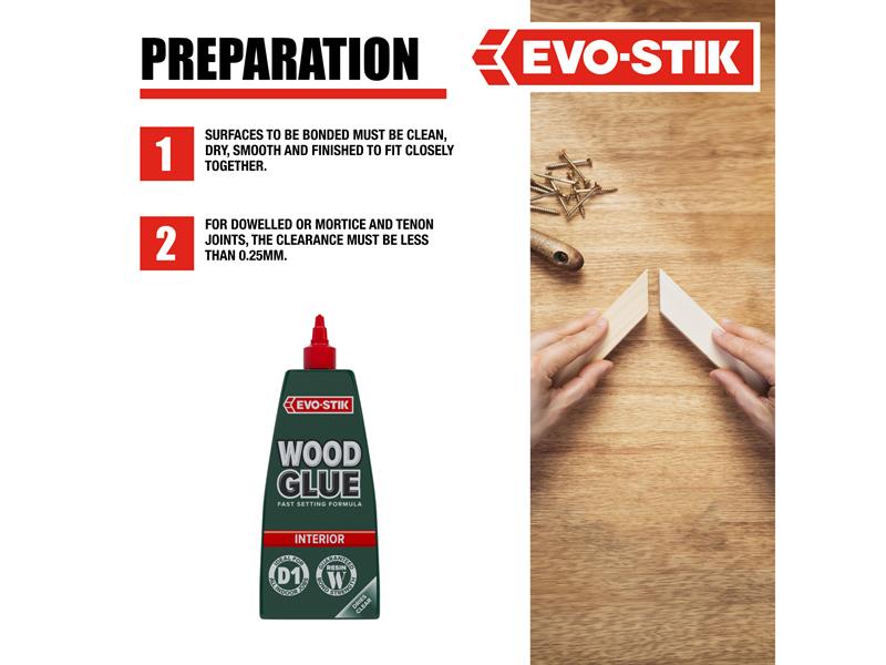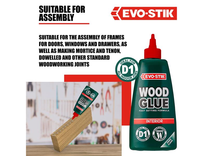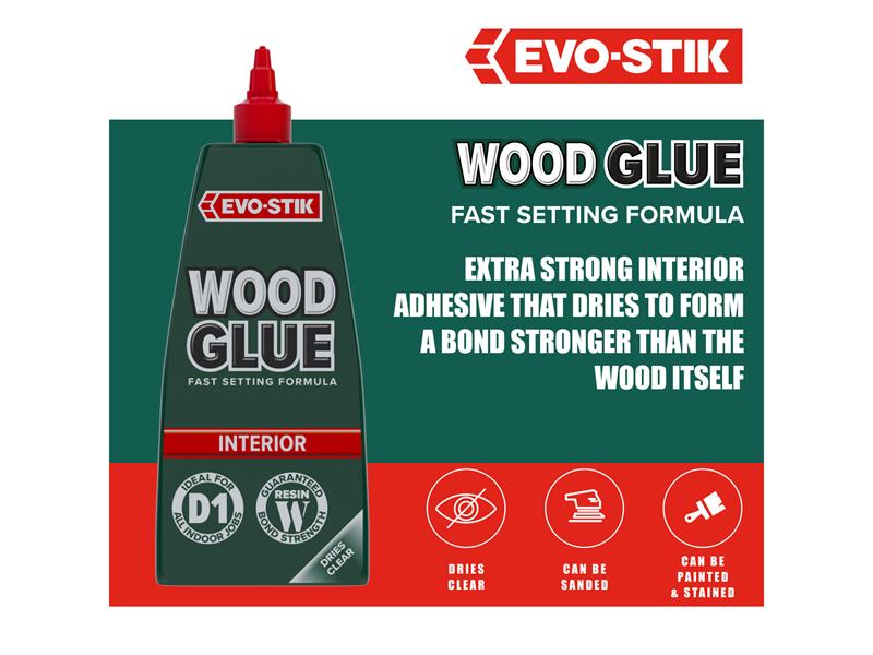Evo-stik wood adhesive is ideal for model kits, furniture, frames and plenty more interior applications. Itll provide you with a bond which is fast drying, clear, suitable for all woods and stronger than the wood itself.