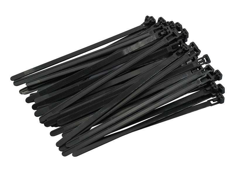 Pack of 50 Faithfull Reusable Cable Ties Black 7.6 x 200mm