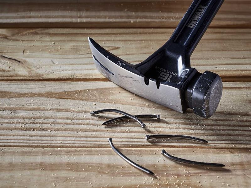 DEWALT® Rip Claw Hammer for quick and easy trim removal, nail removal, etc. Delivers a steady, smooth swing with its balanced design. Depend on this hard-wearing tool for long-lasting performance with its one-piece steel construction and a built-in magnetic nail start for one-handed nail placement. It also features a multi-use side nail puller for efficient and easy pulling.