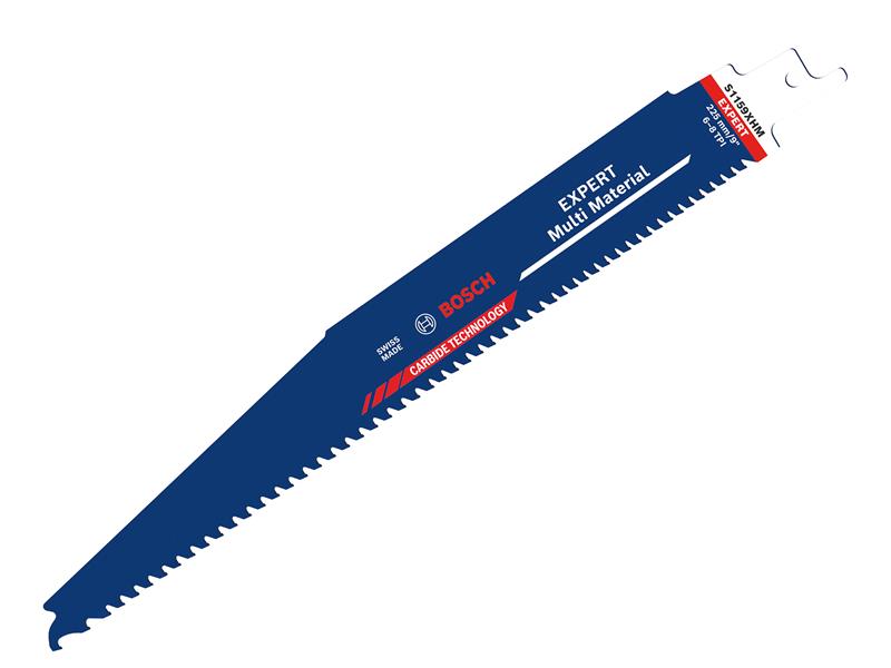 The Bosch S1159XHM EXPERT Multi Material Blade cuts more than just metal and wood. Thanks to Bosch Carbide Technology, you can now cut plastics, construction composites, and pre-fab elements used on building sites. A powerful claw-shaped tooth helps you bite into the material fast. The progressive tooth pitch is designed to cut thin and thick materials alike.