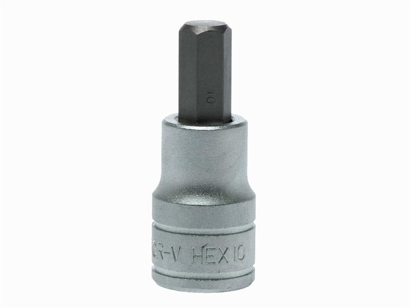 A professional, S2, 1/2in Drive hexagon bit socket produced in accordance with ISO 9000 and AS954 specifications for increased torque and reduced risk of rounding fasteners. Manufactured from chrome vanadium steel with a satin finish.