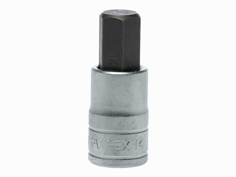 A professional, S2, 1/2in Drive hexagon bit socket produced in accordance with ISO 9000 and AS954 specifications for increased torque and reduced risk of rounding fasteners. Manufactured from chrome vanadium steel with a satin finish.