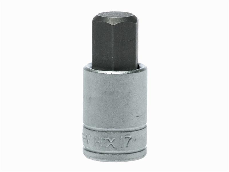 A professional, S2, 1/2in Drive hexagon bit socket produced in accordance with ISO 9000 and AS954 specifications for increased torque and reduced risk of rounding fasteners. Manufactured from chrome vanadium steel with a satin finish.